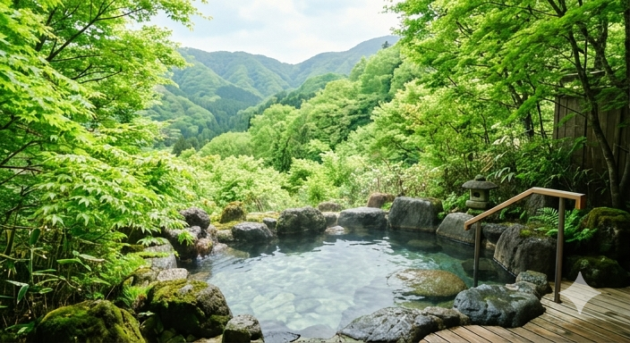 新緑を楽しむ上で欠かせないのが、露天風呂の存在です。山々に囲まれた露天風呂では、視界いっぱいに広がる緑を眺めながら入浴することができ、自然との一体感を味わえます。特に木々との距離が近い施設では、風の音や葉の揺れをよりリアルに感じることができ、心が自然と落ち着いていきます。