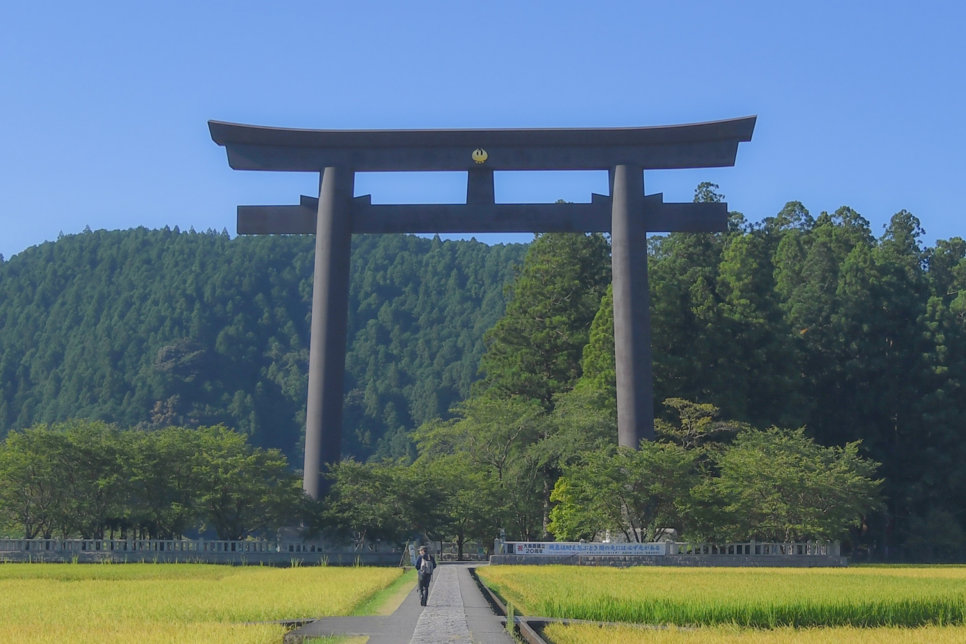 かつて熊野本宮大社があった旧社地「大斎原」は、現在でも特別な空気を感じられる場所です。広大な敷地にそびえる大鳥居は圧巻で、その場に立つだけで心が整っていくような感覚を味わえます。